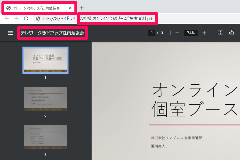 パワーポイントで作成した資料をPDF形式で保存して開くと、ファイル名とは異なる名前がウィンドウやタブに表示される場合がある。这种の問題は、PDFの「タイトル」情報がPowerPointで最初に保存したときのファイル名を引き継いでいるためである。つまり、PowerPointでファイルを保存した際のファイル名が、PDFの「タイトル」として設定されているということである。このため、ファイル名を変更しても、PDFの「タイトル」は自動的に更新されない。