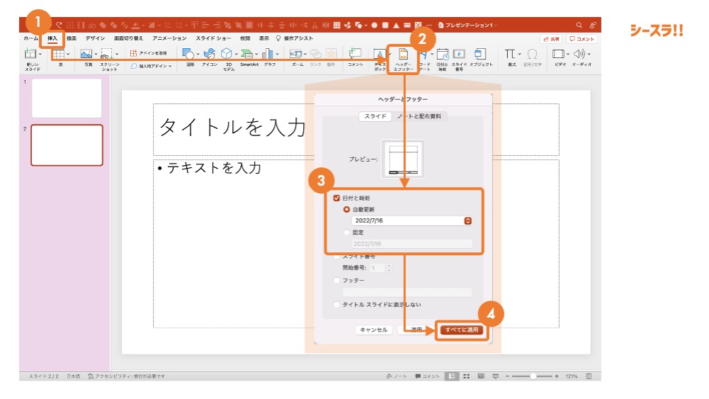 パワーポイントでヘッダーとフッターを簡単に変更する方法