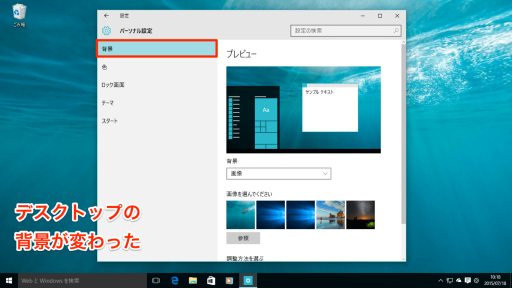 デスクトップの背景を変更する方法