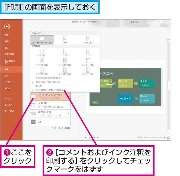パワーポイントでコメントを印刷しない設定を変更する方法は?